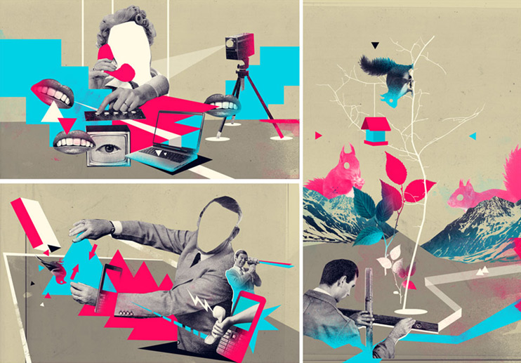 illustrations for men’s health’s column "how to do everything better" on teaching your grandma skype, protect your birdfeeder from nasty squirrels and pull off an april fools’ prank.