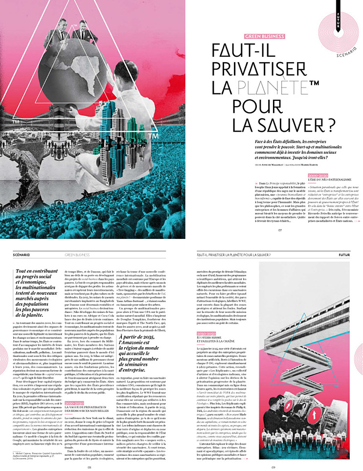 illustrations on an article about the future role of companies for the french culture mag usbek & rica.